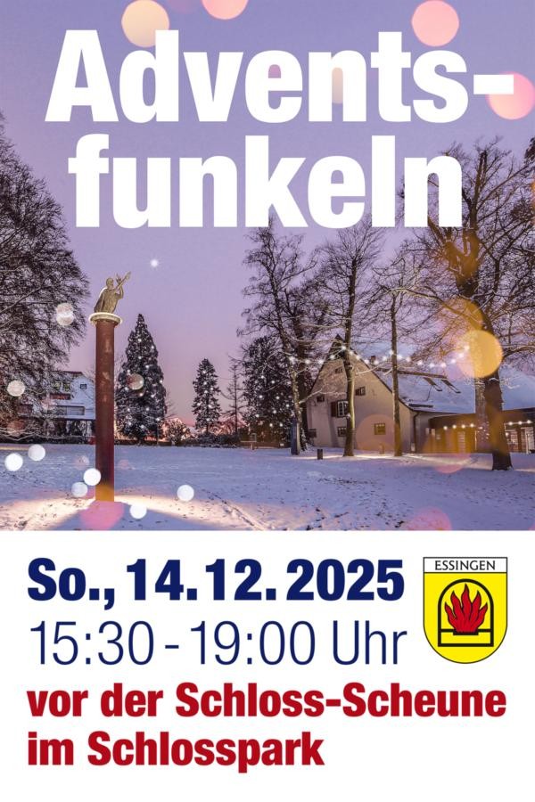 Die Gemeinde Essingen lädt herzlich zum diesjährigen Adventsfunkeln am 14.12.2025 ab 15:30 Uhr im Schlosspark ein.